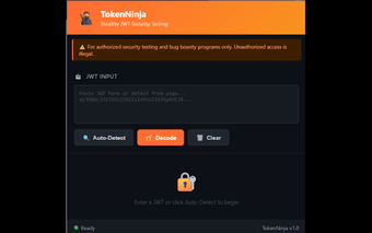 TokenNinja to zaawansowane narzędzie przeznaczone dla specjalistów zajmujących się bezpieczeństwem, które umożliwia identyfikację i testowanie podatności związanych z JWT (JSON Web Token). Aplikacja automatycznie skanuje strony internetowe w poszukiwaniu tokenów w ciasteczkach, localStorage, sessionStorage oraz nagłówkach. Obsługuje nowoczesne frameworki, takie jak Next.js i Redux, co czyni ją wszechstronnym narzędziem dla testerów penetracyjnych oraz badaczy bezpieczeństwa.